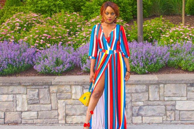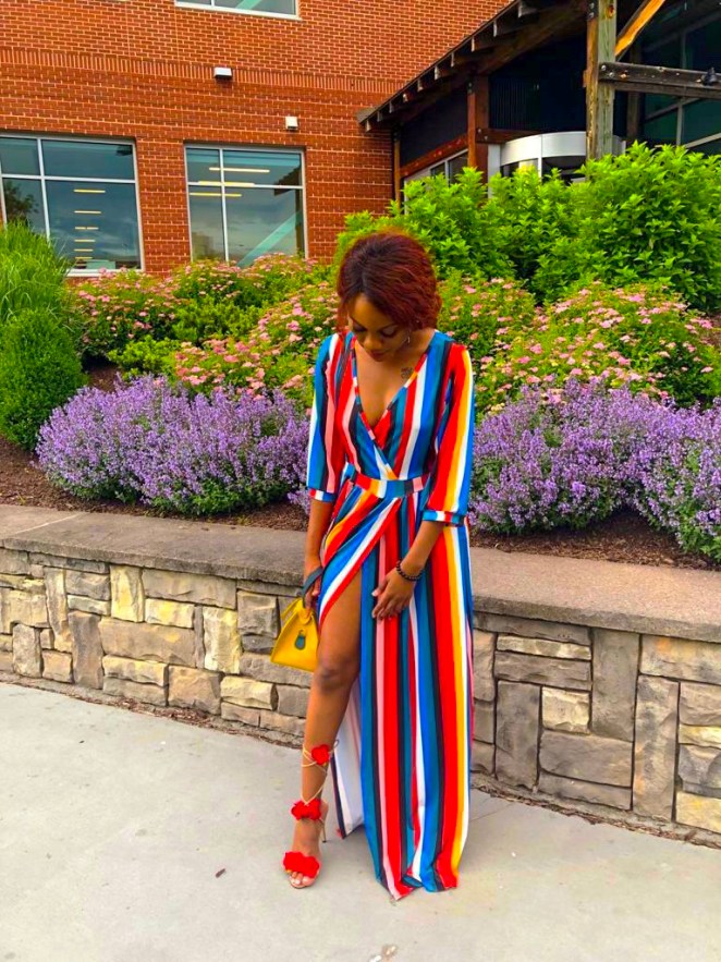 Speaking of colorful.In this post I have this gorgeous colorful summer dress .The dress makes an ideal outfit for a babyshower, picnic,brunch or any social gathering.I think it be can worn casual with sandals or dressy with pumps however, I do think the dress leans more on the casual side.You can as-well wear it to church or a naming ceremony ,because the best part is you can cover up the slit wink*.The material is polyester and spandex so it is stretchy and true to your size.