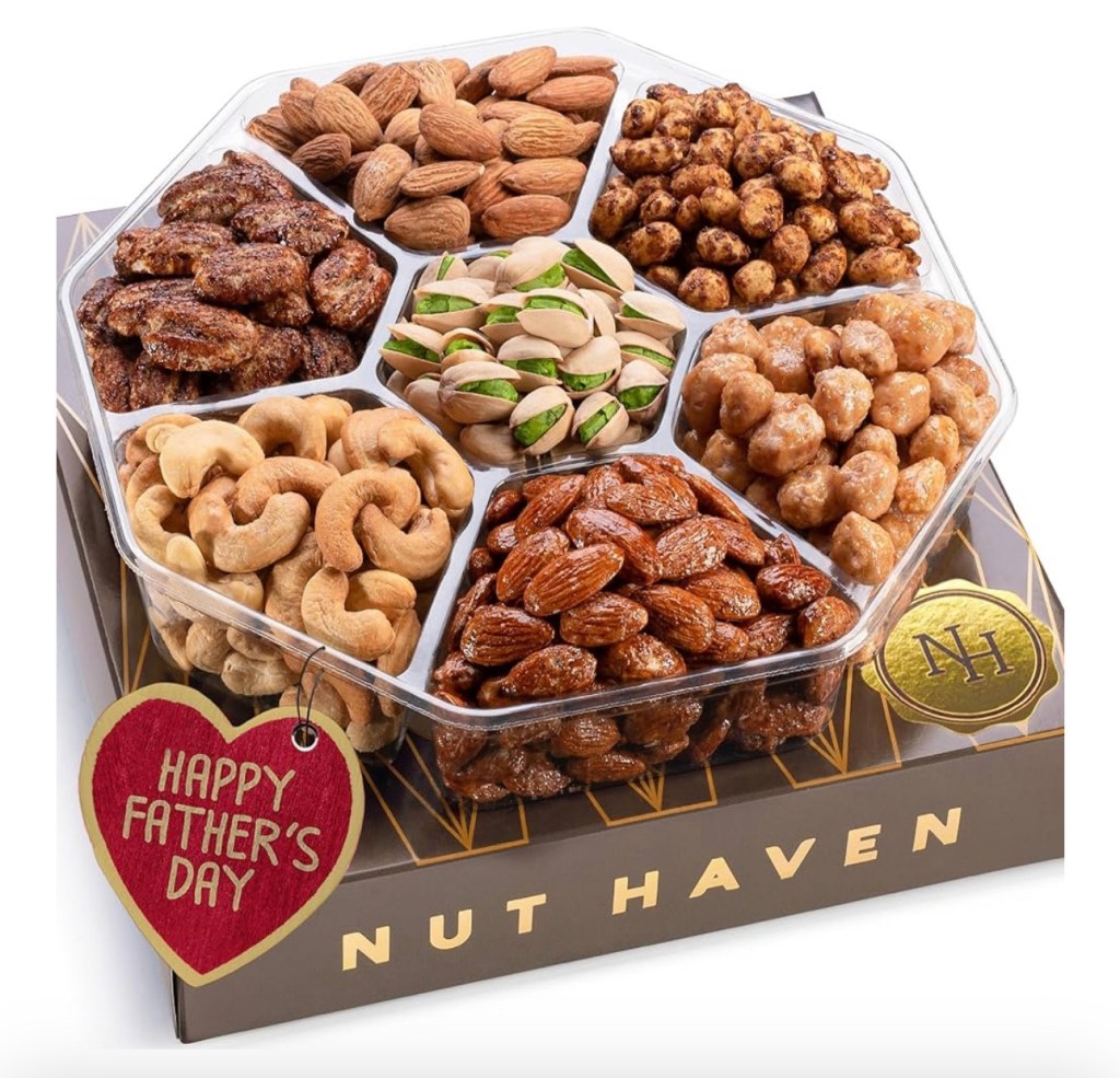 A healthy and delicious gift idea for various occasions :). This mixed nut box contains Toffee Peanuts, Glazed Almonds, Roasted Salted Almonds, Dry Roasted Salted Pistachios, Glazed Peanuts, Roasted Salted Cashews, and Glazed Pecans. You can purchase it here: https://amzn.to/3SJncn8